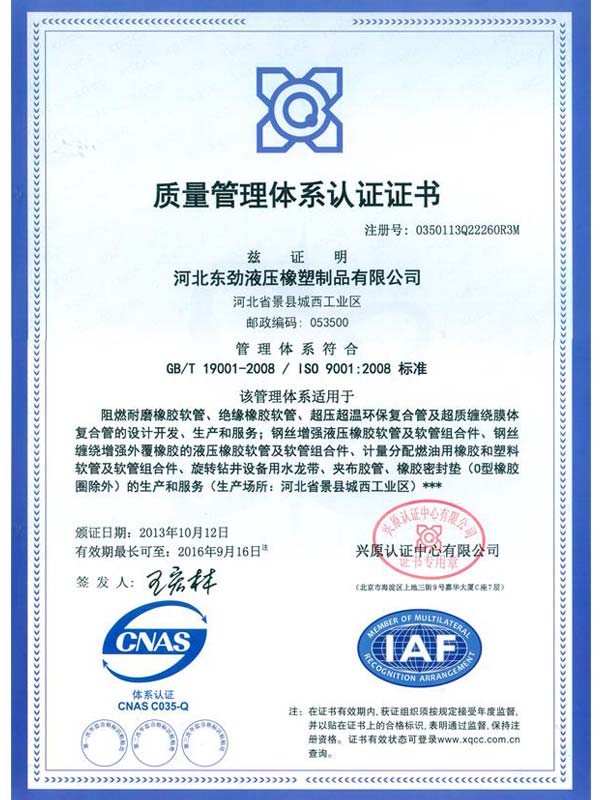 東勁品牌被評為“河北省著名商標”,企業管理通過了國家質量、環境及職業健康三項管理體系認證,產品品質有保證;